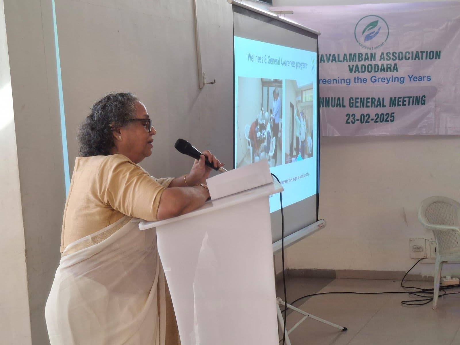 The first Annual General meeting of Vayavalamban Association was held on Feb 23, 2025 at the ONGC Officers Club. It was attended by 34 members, invited guests, volunteers and spouses of members.Welcome address was delivered by Dr Vishwanathan, Vice President and an overview of the activities of the Association, audited financial results for 2023-24 were presented by Mrs Gita Singh, Secretary. The road map for future activities was given by President, Mr AK Dwivedi. The website Vayavalamban (u4us.org) was formally launched on this occasion. Invited guest, Ms Gayatri Vyas, CEO of VNM Foundation and VNM TV applauded Vayavalamban for its vision to serve the senior citizens. She urged the members to volunteer for social welfare initiatives as they have vast knowledge, experience and now enough time to spare for such activities. Informative presentations by some members of the group on relevant topics was widely appreciated by all participants.