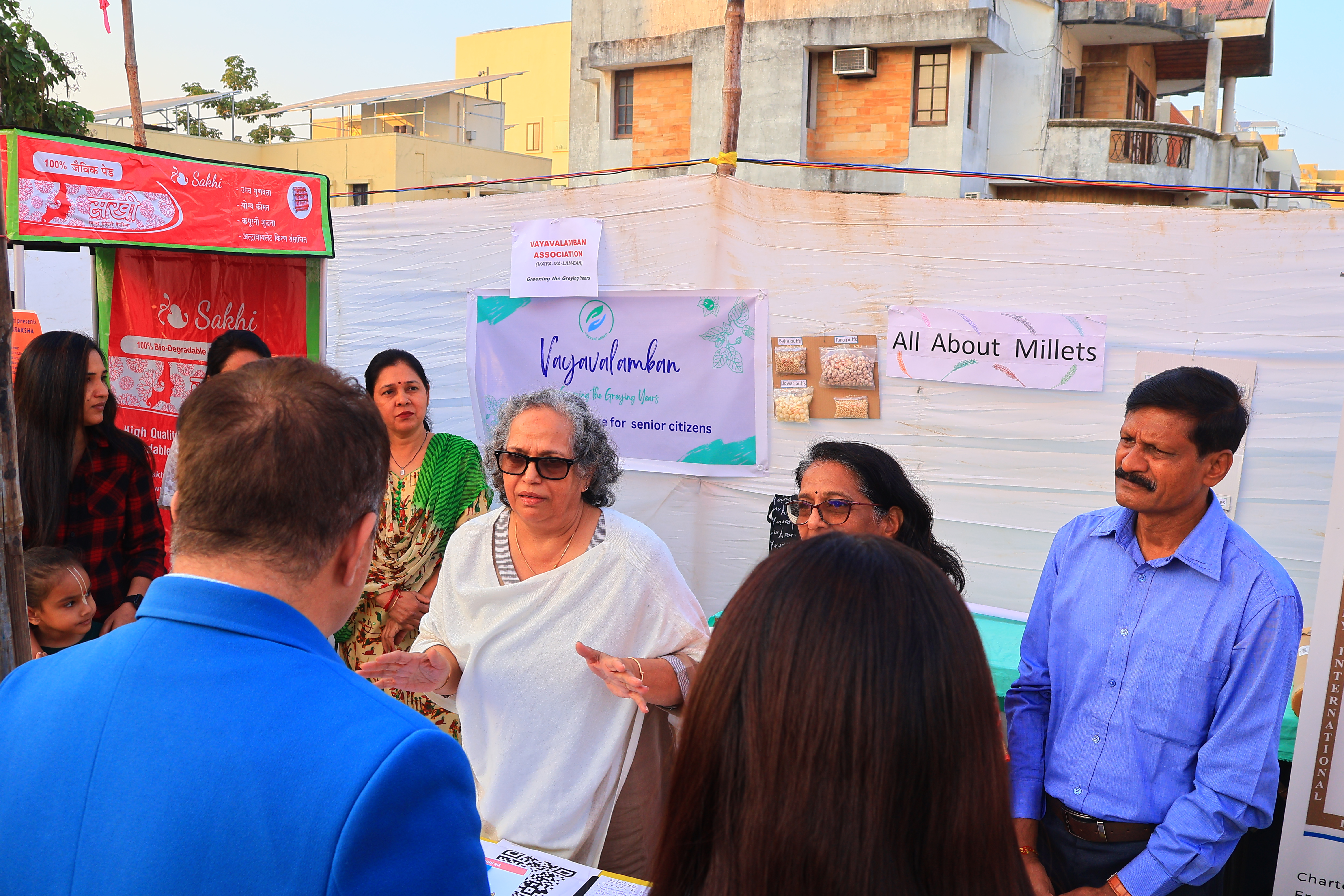 Vayavalamban Stall at Millet Mahotsava in Jan 2024, organised by Rotary Club Vadodara Heritage. It was the first initiative for creating public awareness and enrolling members. Public awareness for the initiative of Vayavalamban and registration of new members was the result of this participation.