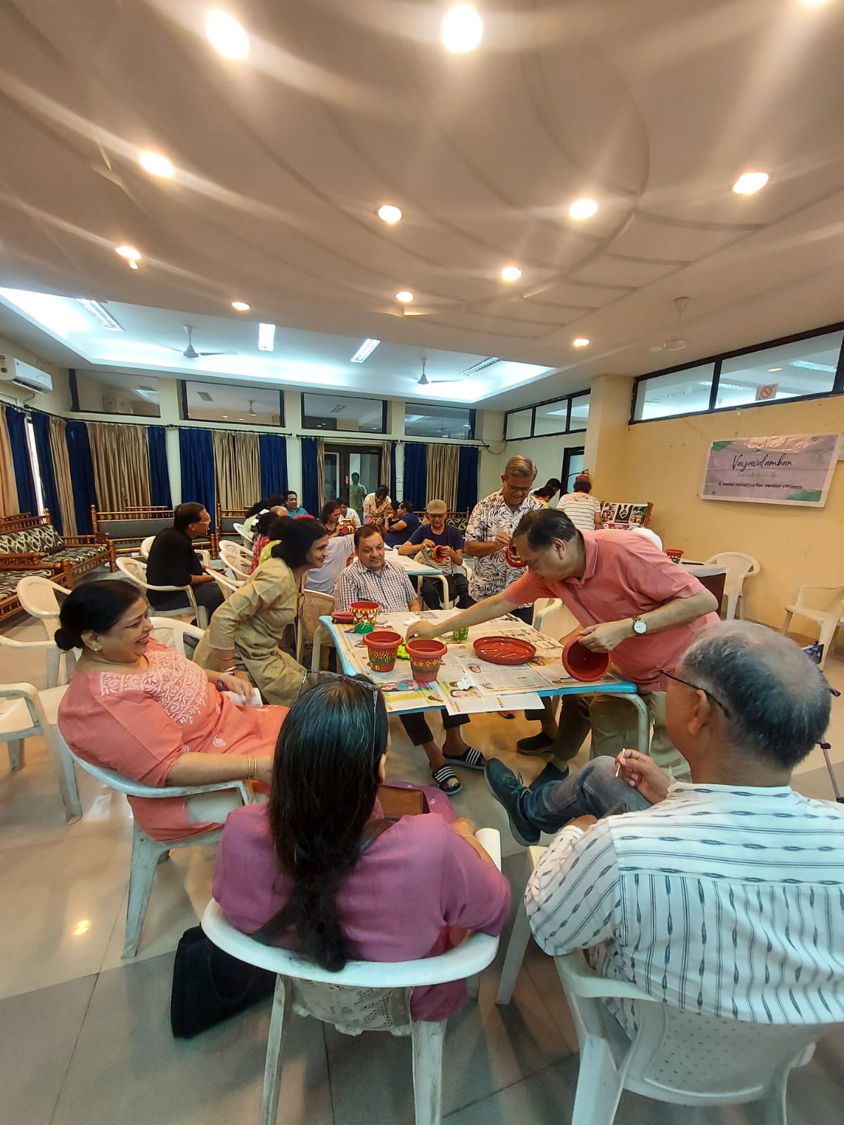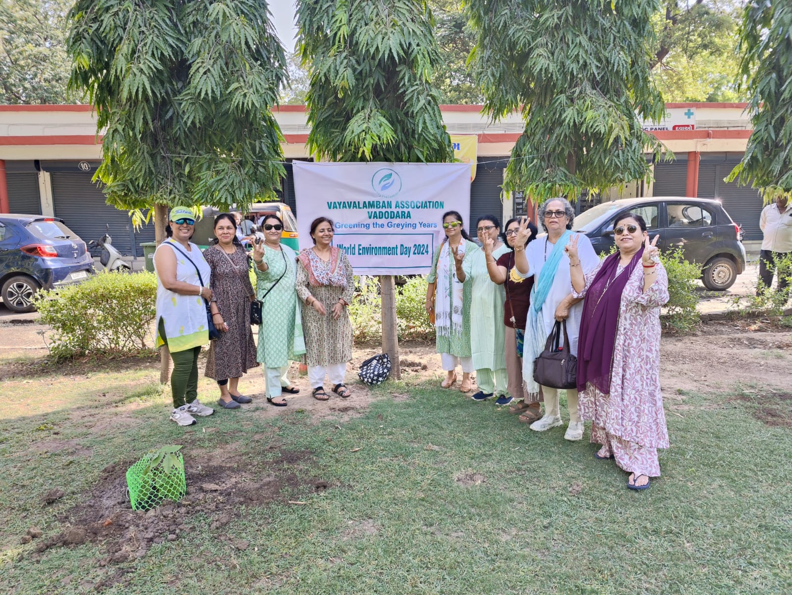 V4Us celebrated World Environment Day on Wednesday, 5 June 2024 in the garden in front of ONGC Shopping Centre. The program started at 8.30 am by members planting trees and becoming a protector of the environment. We then assembled at Officers Club where we did pot-painting and chattted over tea.